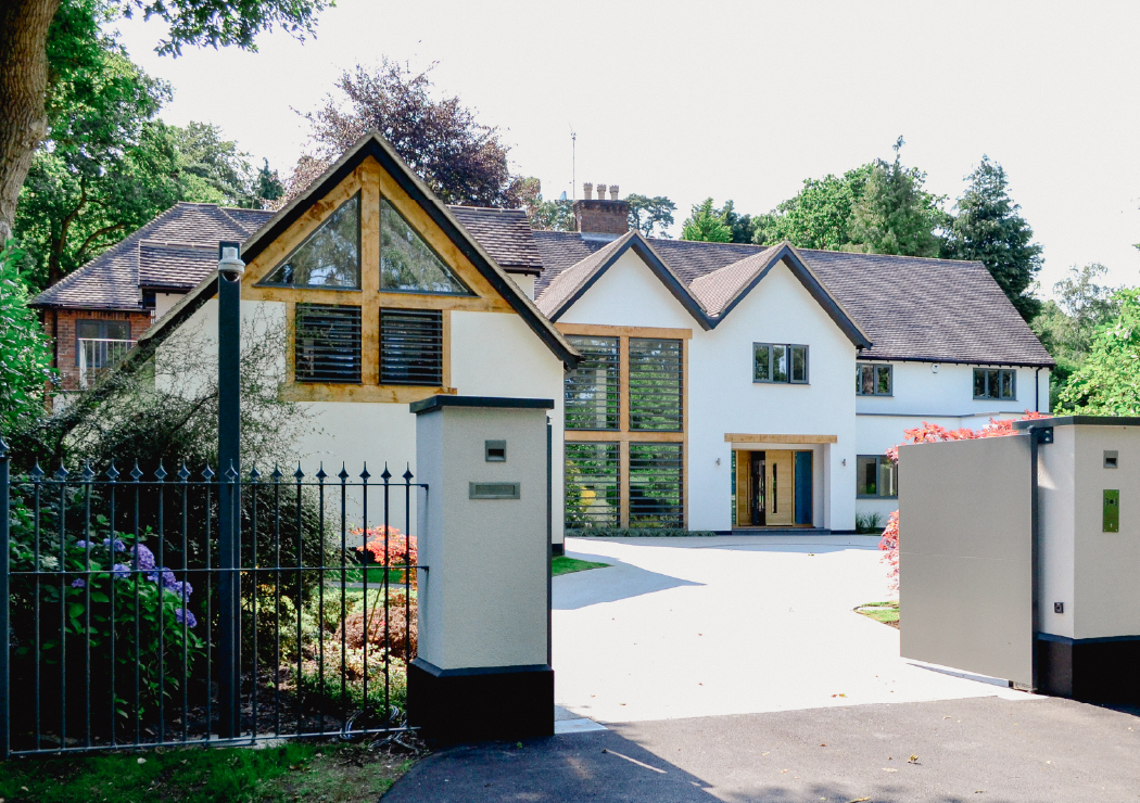 Louvre House was built in the 1980’s and was a typical developer house on a large private estate in Oxshott. The house was rather style-less externally, and uninteresting internally. This project started life as a small garage extension and ended up as a full-house remodelling and refurbishment, with large extensions to the front, side and rear.
