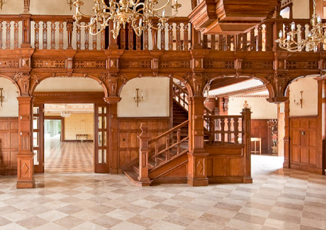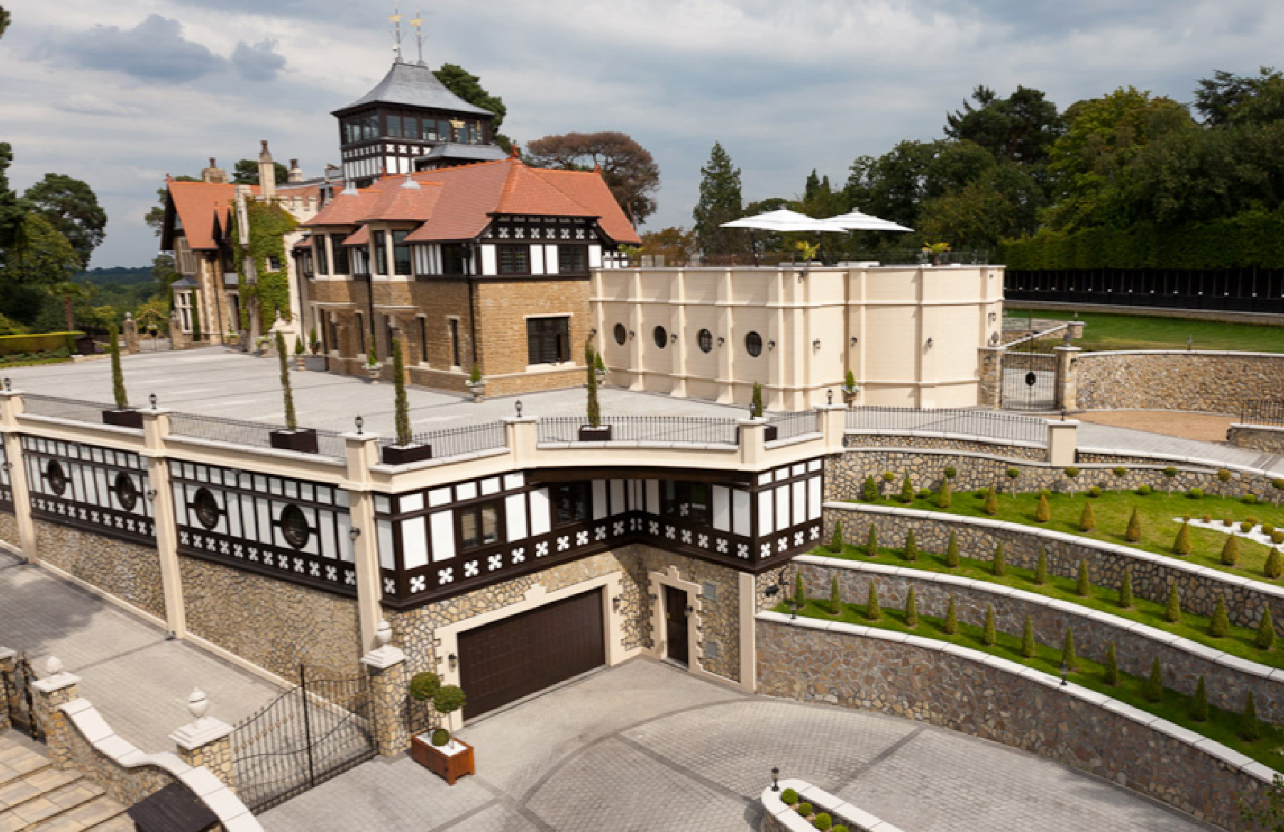 The design features a large ground floor swimming pool and fitness centre, a new four-storey tower, and an expansive entrance terrace. An extensive basement was also incorporated, providing parking for 20 cars, a large secure storage area, a security office, an extensive wine cellar, and a commercial-sized kitchen. This thoughtful combination of modern amenities and historical preservation aims to transform Tower House into a luxurious family home while respecting its architectural heritage. Apart from the scale of this house, its other unique feature is the newly constructed tower with 360ยบ panoramic views over Surrey.