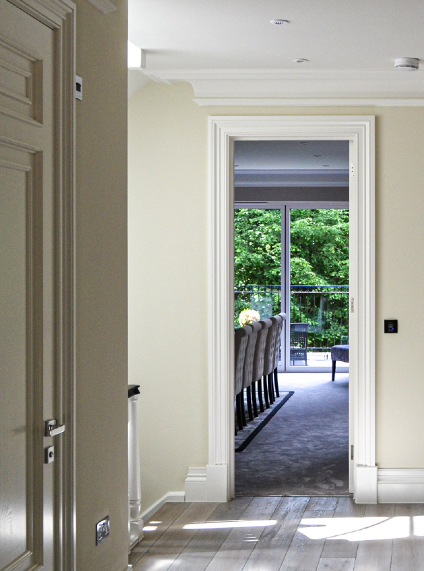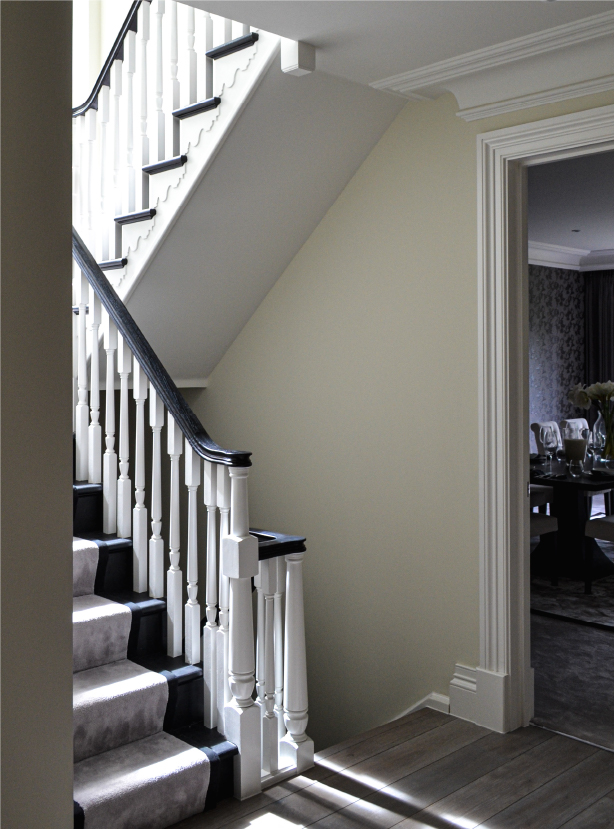 Traditional detailing was used internally with the use of profiled cornices, carved, skirtings and architraves and an open tread staircase. These complemented the very modern kitchen and bathrooms.